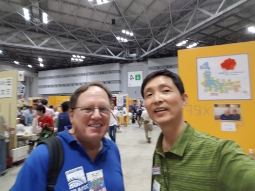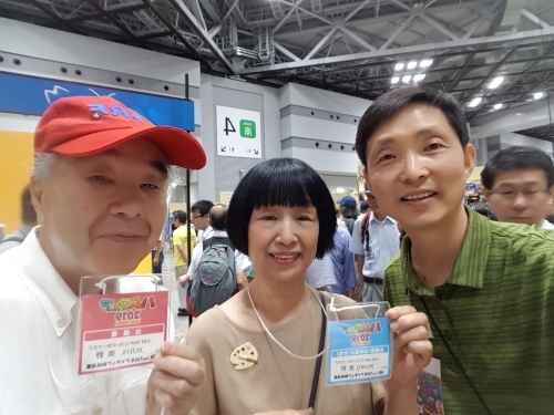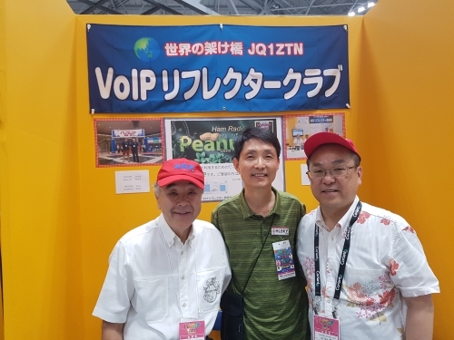 JA3QWG는 캄보디아의 유명한 YL op였던 XU8DX의 남편으로, 교신할 때마다 느끼는 것이지만, 아주 순수하고 친절한 사람입니다. 얼굴을 보자마자 인사를 하고는 곧 바로 입장티켓을 사 왔습니다. 일본의 DV통신 현황에 관해 얘기를 많이 들었습니다.