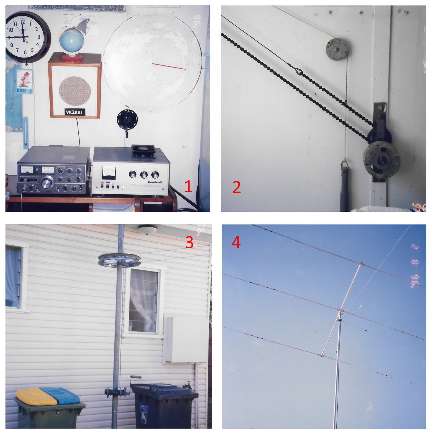 리니어 위의 둥근 손잡이를 돌리면, 방향지도의 바늘이 움직이고, 벽 뒤의 풀리도 함께 돕니다. 풀리에 연결된 체인이 안테나 마스트를 돌리게 됩니다.