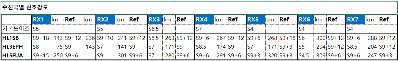 TX1 (HL1SB, 서울) 출력: 100W, 안테나: Dipole (15층 아파트위 7mH) 동서방향으로 설치