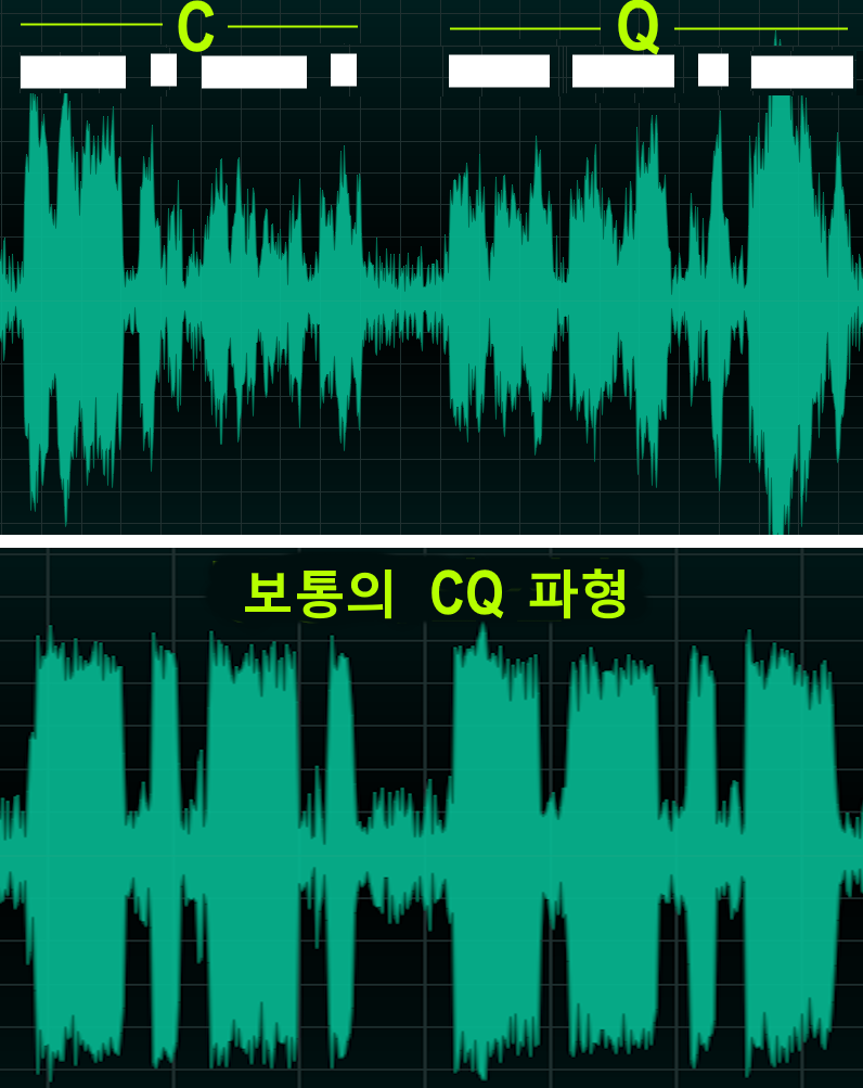 아래 그림에서 보듯이, 장점 하나가 여러 개의 신호로 보이고 단점도 불필요한 신호와 겹쳐 있다. 장단점 사이가 불분명해지므로 속도를 늦추고 부호를 또박또박 송신하는 것이 좋다. 속도는 약 18wpm 이다.
